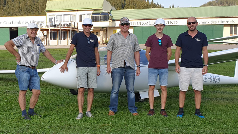 Aussenlandetraining in LOGM (Mariazell) mit unsern Flugschülern Arnold und David, Schlepppiloten Fritz und Tom.